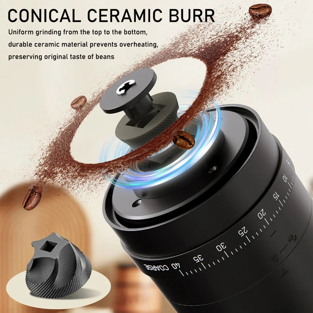 ☕⚡ Φορητός Ηλεκτρικός Μύλος Καφέ USB – 40 Επίπεδα Άλεσης & Επαναφορτιζόμενος ⚡☕