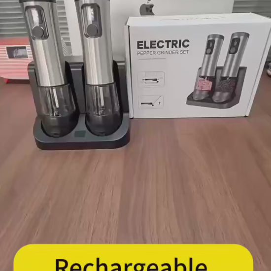 🧂✨ Ηλεκτρικός Αυτόματος Μύλος Αλατιού & Πιπεριού – Σετ με Επαναφορτιζόμενη Βάση & LED Ένδειξη ✨🧂