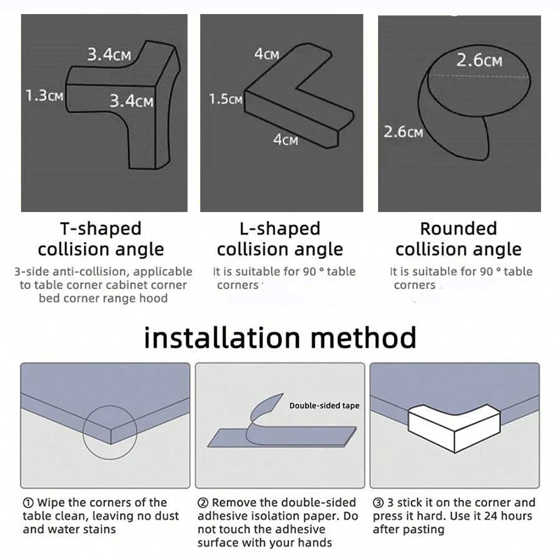 Κατασκευασμένα από μαλακό PVC υλικό, εφαρμόζουν εύκολα στις γωνίες τραπεζιών, γραφείων και επίπλων, μειώνοντας τον κίνδυνο τραυματισμού.