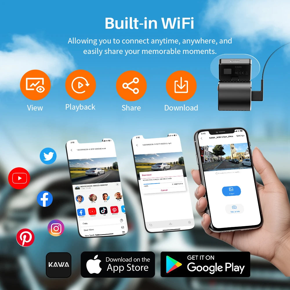 🚗📹 KAWA MINI 3 Gen2 Dash Cam – 2K WiFi Car Camera με Night Vision & Voice Control